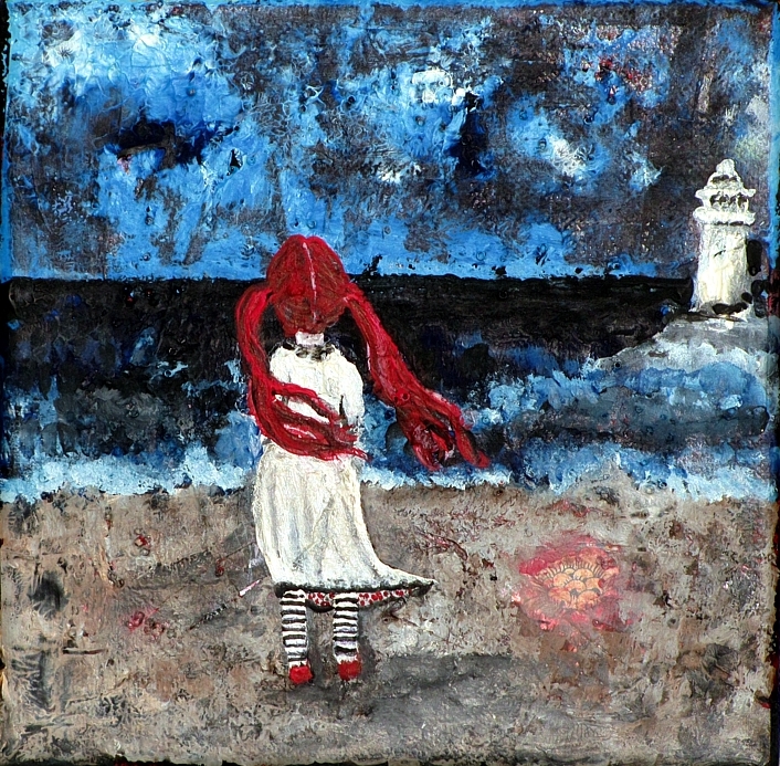 Μονάχα μία μικρή χαραμάδα χαρίζουν στο φως, να περάσει, να ρίξει τις ηλιαχτίδες του, να ριχτεί στης θάλασσας την αγκαλιά, να χρωματίσει το γκρίζο κάδρο με παρουσία αγγελική. Ο Θεός κυλά μέσα στο κάδρο μου στην αγκαλιά τούτης της ηλιαχτίδας, και μου ψιθυριζει ... ''Δεν είσαι μόνη μέσα σ'αυτό το κάδρο, ψυχή μου, δεν είσαι μονάχη...!'' Με την άκρη των ματιών μου πάντοτε στραμμένη προς την μικρή ηλιαχτίδα, αφήνομαι στις χοές σας κύματα, αφουγκράζομαι τα λόγια σας. Μου μιλάτε πάλι για αυτά που δεν θέλω να ξέρω, για τα μάτια που δεν θέλω πια να κοιτώ, μου ξυπνάτε αισθήματα που παλεύω σε λήθαργο να ρίξω... Δεν θέλω πια να ξέρω για όσους δεν είναι πια εδώ, δεν θέλω να ξέρω... Δεν θέλω να φροντίζω, δεν θέλω να πονώ στον πόνο τους. Μιλήστε μου για όσα είναι εδώ...! Μιλήστε μου για τα ταξίδια σας τα μακρινά σε άλλα κάδρα, σε άλλους κόσμους, σε άλλες ψυχές γενναίες, όμορφες... Μη μου μαρτυράτε όσα δεν θα'πρεπε να νοιώθω, μην μου καθρεφτίζετε την ψυχή τους. Θάλασσα την σιωπή σου...